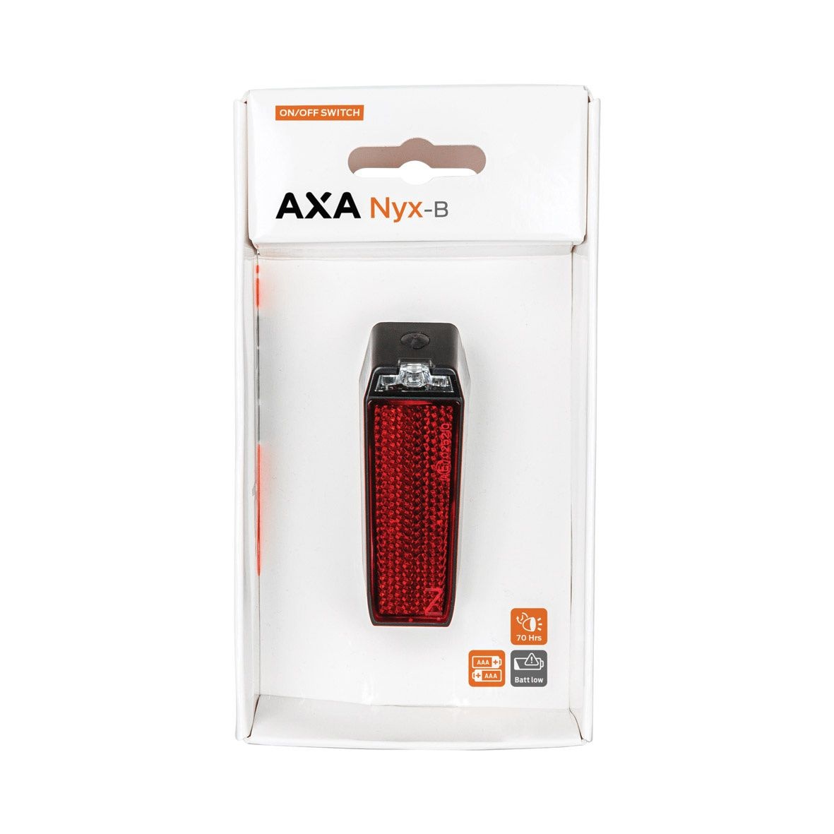 Het Axa achterlicht Nyx is een betrouwbaar fietslicht dat werkt op 2x AAA-batterijen met een indrukwekkende levensduur van 70 uur. Dit achterlicht is uitgerust met een bijna leeg-indicator, zodat je altijd op de hoogte bent van de batterijstatus. Het is eenvoudig te monteren op het spatbord van je fiets, waardoor het zowel praktisch als functioneel is.