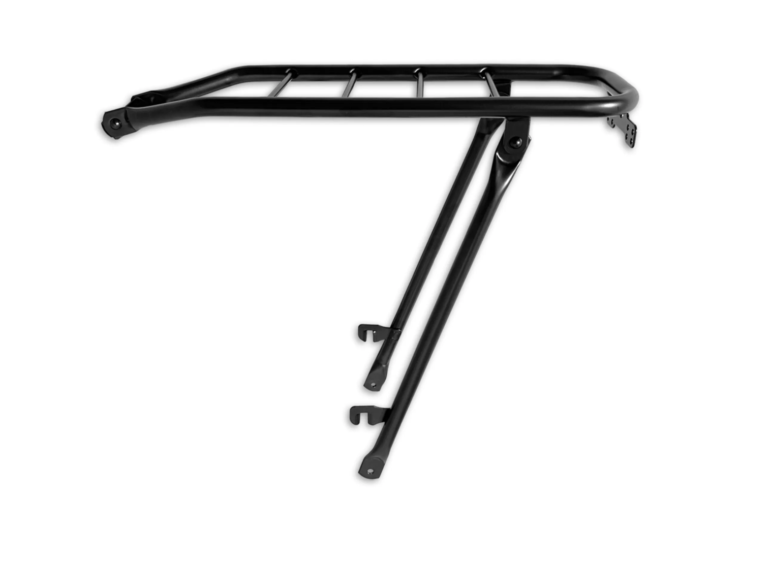 De Lynx achterdrager 28 inch is een robuuste en praktische bagagedrager voor montage op de achterzijde van stads- en transportfietsen. De drager is vervaardigd uit hoogwaardig staal en voorzien van een krasbestendige zwarte poedercoating die bescherming biedt tegen roest en slijtage. Dankzij de bevestiging op de pletscherplaat en as in combinatie met de scharnierbare poten is montage op verschillende fietsen eenvoudig en flexibel. Uitgerust met snelbindernokken voor optionele montage van snelbinders. Daarnaast is de achterdrager geschikt voor montage van achterlichten met een boutafstand van zowel 80 als 50 millimeter. Ontwikkeld voor fietsen met 28 inch wielen. Wordt geleverd inclusief montagemateriaal