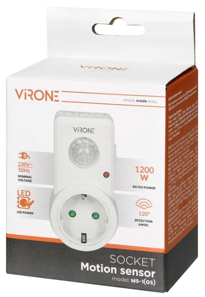 Dankzij het gebruik van een infrarood sensor helpt het apparaat het in- en uitschakelen van elektrische apparaten na bewegingsdetectie te automatiseren.