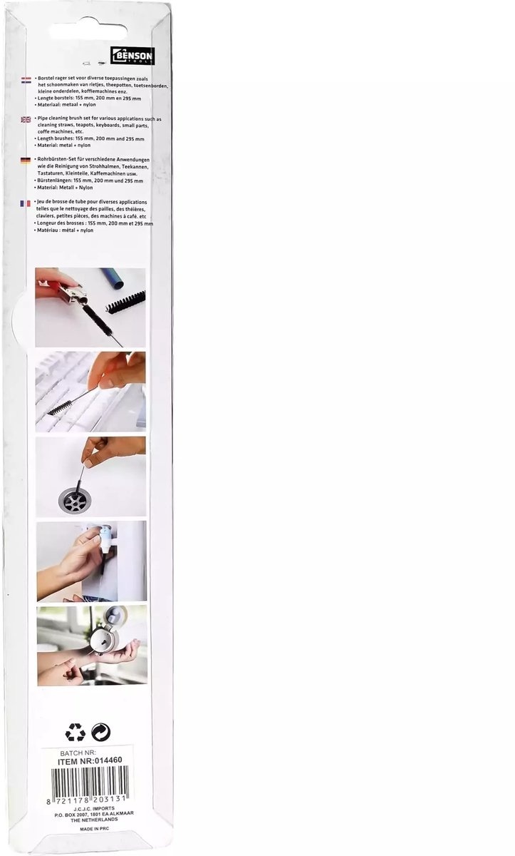 • Lengte borstels: 155 mm, 200 mm en 295 mm