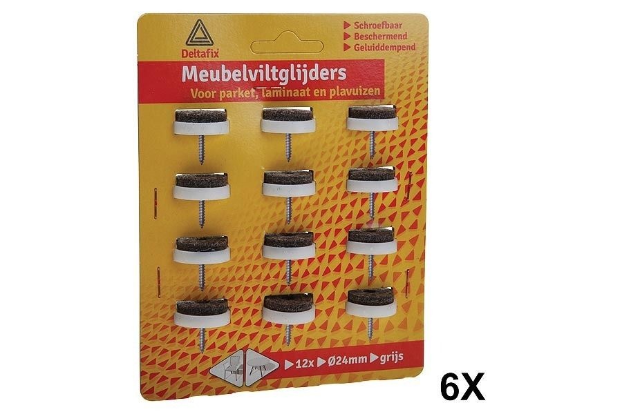 Deltafix Viltglijder met Schroef - Grijs Vilt, Houder Lichtgrijs, 24 mm (12 Stuks)