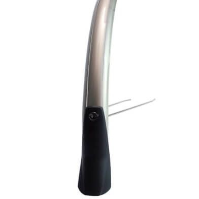Eurofender voorspatbord Snello 28 inch inclusief stang,spatlap en bevestigings knop smoke/titanium 46 mm breed, oa gemonteerd op Batavus Gazelle en Giant