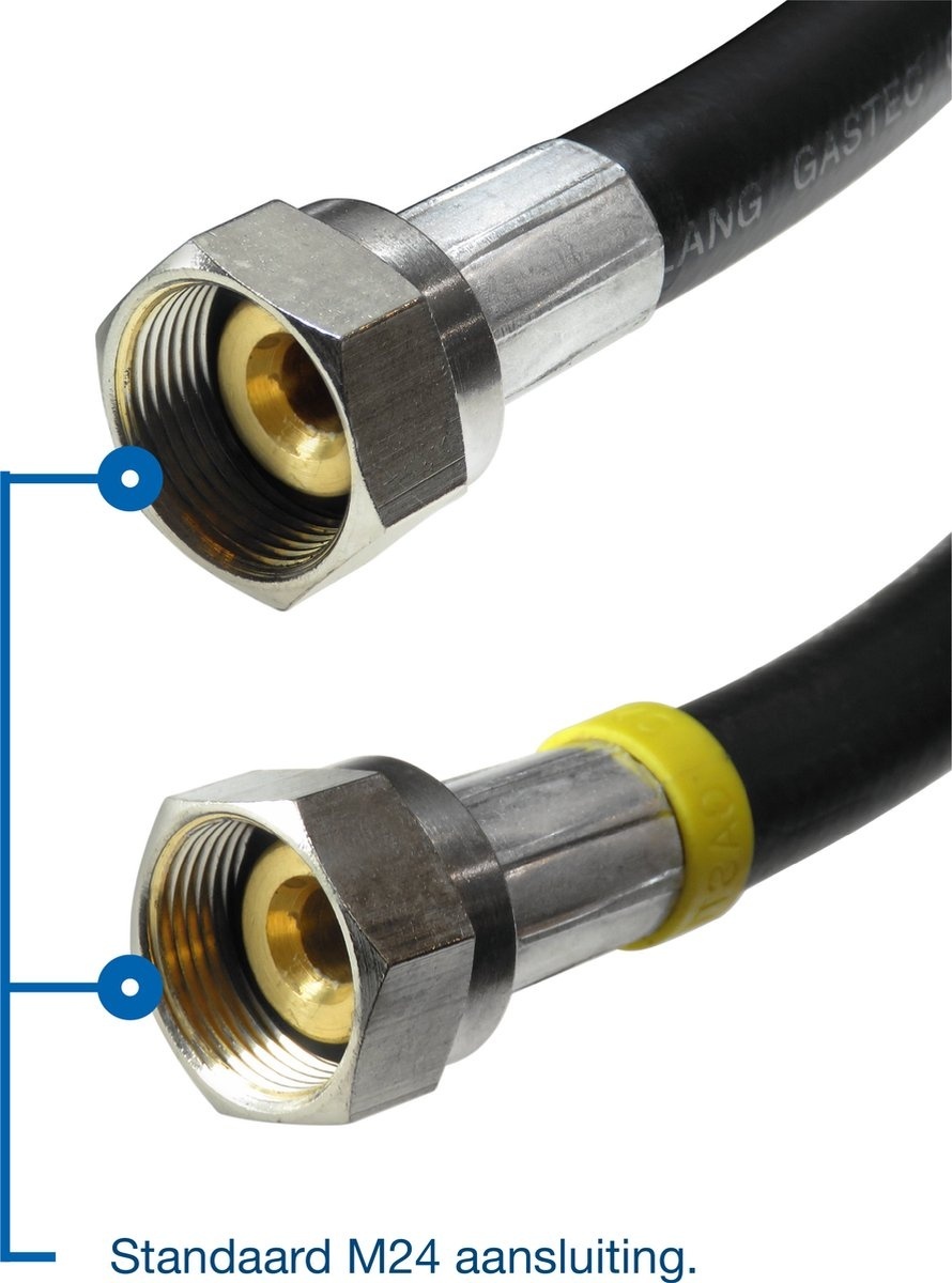 Flexibele rubberen gasslang inclusief M24 koppelingen en O-ringen.