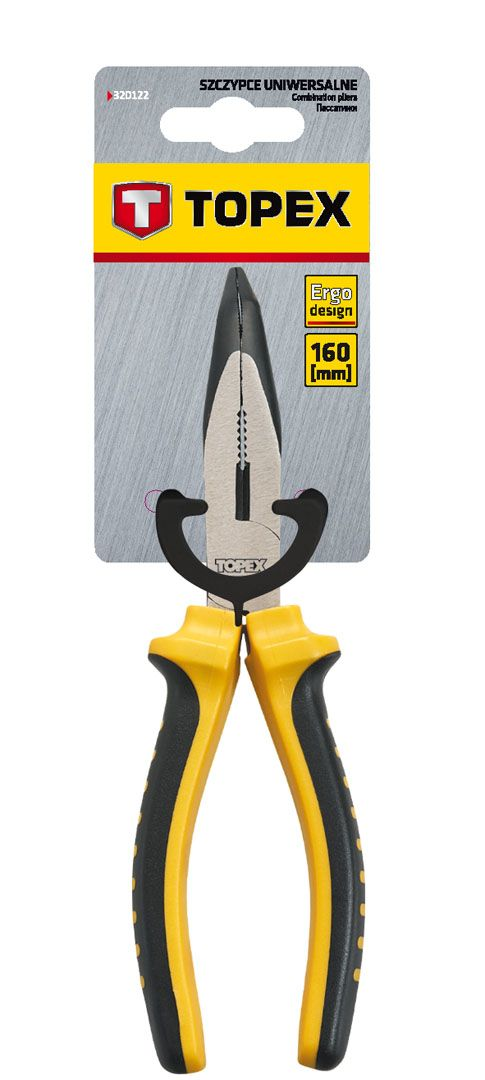 TOPEX verlengde gebogen tang, 160 mm lang. Gemaakt van gehard staal, extra inductiegeharde snijvlakken. Ergonomische handgrepen bedekt met antislipmateriaal zorgen voor comfort en veiligheid tijdens het werken. Het product past perfect bij de vorm van de hand. Het merk TOPEX richt zich op doe-het-zelvers.