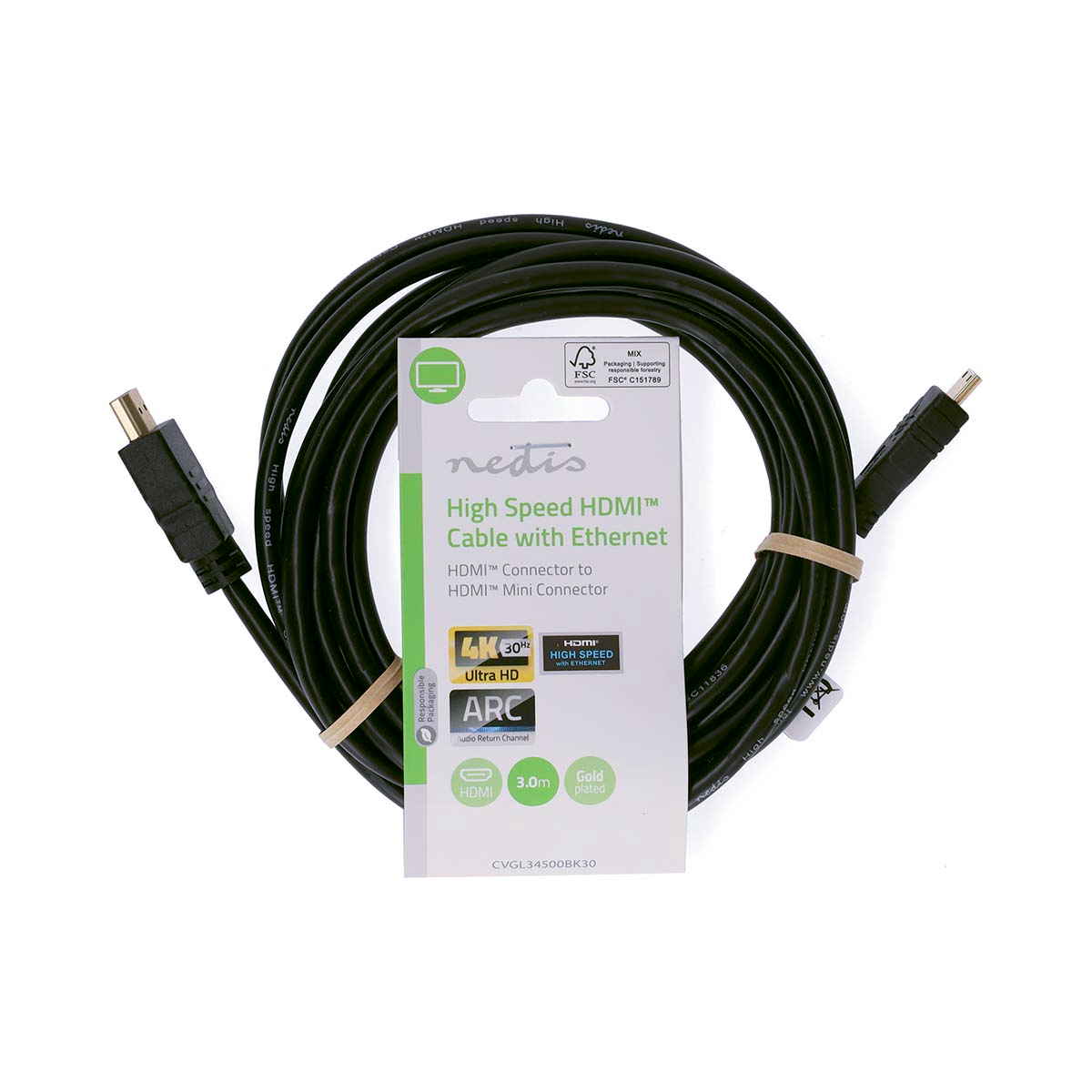 Deze High Speed HDMI-kabel met ethernet is geschikt voor het netwerken van apparaten en kan videoresoluties van 1080p en hoger aan, waaronder geavanceerde display technologieën zoals 4K, 3D en Deep Color. De mini-connector stelt u in staat om uw apparaten te verbinden met een home cinema-set, LCD- of plasma TV.