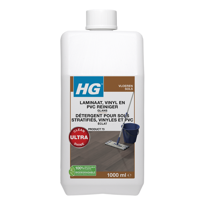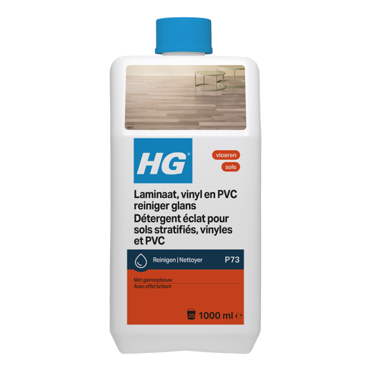 HG laminaat, vinyl & PVC reiniger glans (product 73) is een heerlijk fris ruikende en geconcentreerde dweilreiniger voor alle soorten laminaat, vinyl & PVC vloeren. Met HG HG laminaat, vinyl & PVC reiniger glans is iedere laminaat, vinyl & PVC vloer in een handomdraai gereinigd en geeft het laminaat, vinyl of PVC glans.