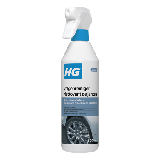 Velgen reinigen? Een goede velgenreiniger is een must om velgen mooi schoon te krijgen. Vuil als hardnekkig remvloeistof is op anders geen enkele andere manier te verwijderen. Zelfs als de auto net uit de wasstraat komt zien ze er vaak nog niet schoon uit. Velgenreiniger is een uiterst krachtig middel en een must voor velgen reinigen en perfect om de velgen goed schoon te krijgen. De HG velgenreiniger is ook ideaal als voorbehandeling voordat de auto de wasstraat ingaat. Door de samenstelling van ingrediënten worden de velgen niet aangetast. Daarnaast is de velgenreiniger biologisch afbreekbaar.