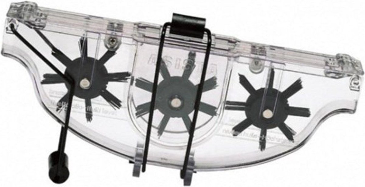 De Asista kettingreiniger is een must-have voor elke sportieve fietser. De kettingreiniger is simpel te gebruiken bij racefietsen en ATB’s zonder de ketting te demonteren en zonder vieze hande te krijgen. De Assista kettingreiniger wordt geleverd met 3 extra borstels.