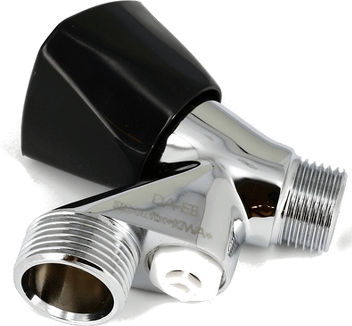 Wasmachinekraan met terugslagklep.1/2 buitendraad X 3/4 buitendraad.