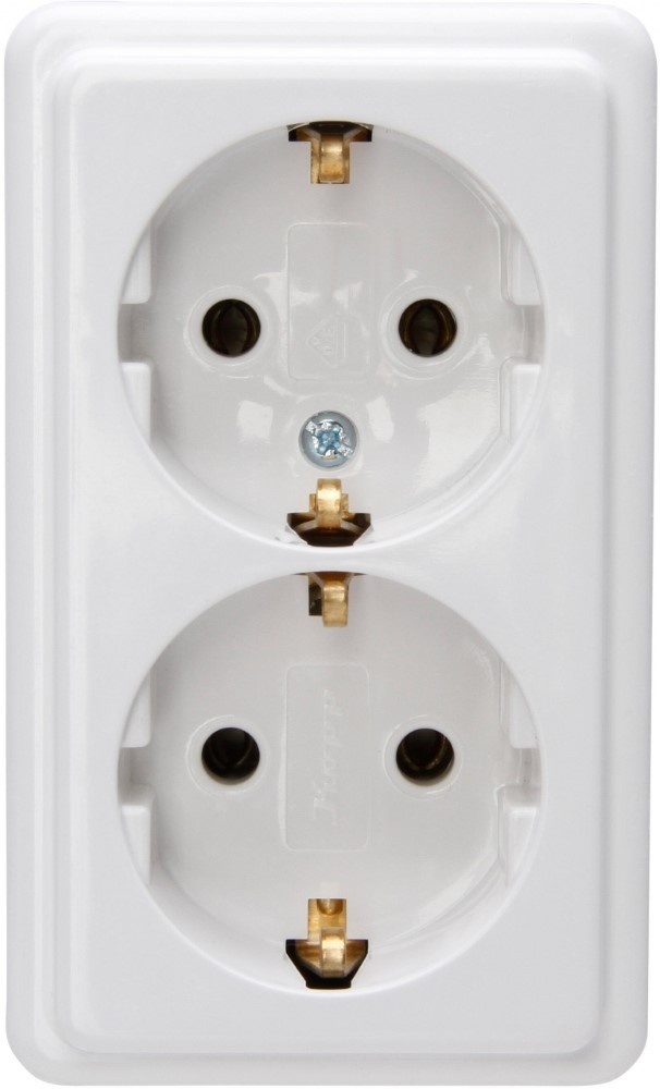 Uitvoering: Opbouw stopcontact met randaarde dubbel + montageplaat