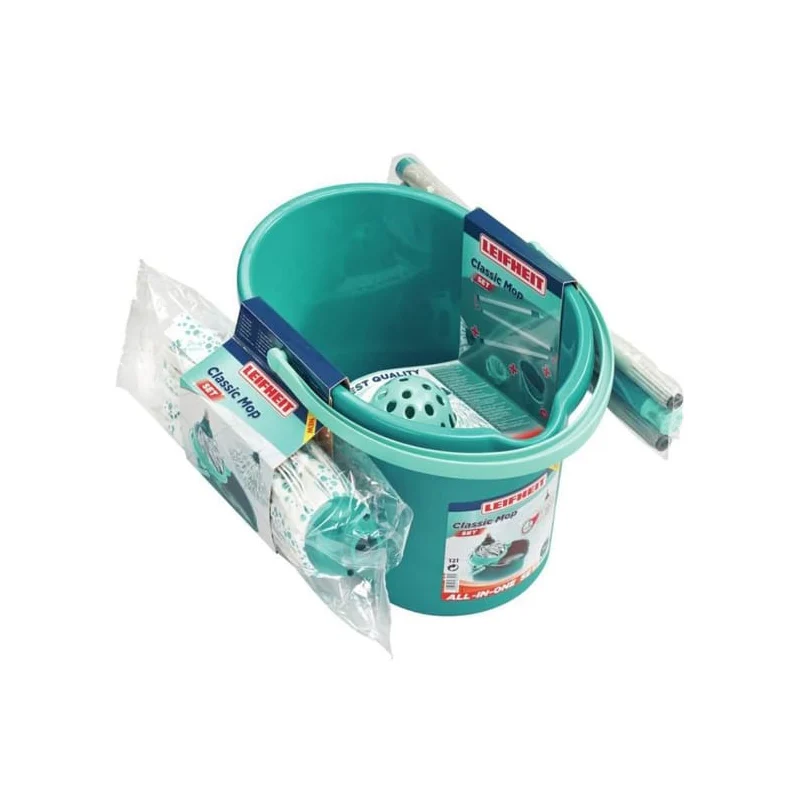 Handig: alles in één set – voor gemakkelijk en grondig schoonmaken van de vloer – zonder bukken en zonder vuil water aan je handen. Inclusief de veelbewezen Classic Mop die veel water en vuil opneemt met zijn sterk absorberende, flexibele viscosestroken.