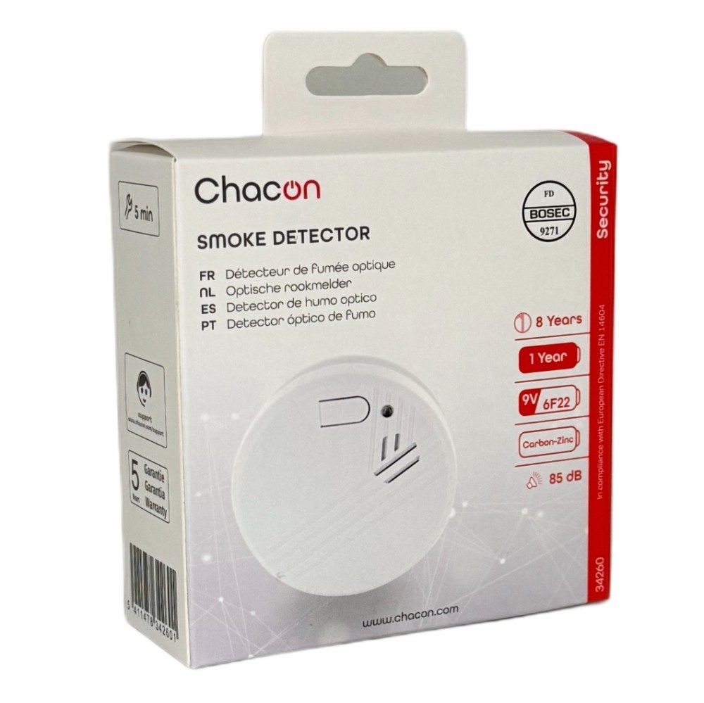Rookdetectie voor een oppervlakte van 25m² of in een ruimte 50m³