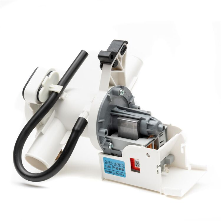Samsung Afvoerpomp compleet – DC97-15861D (50Hz) — complete afvoerpomp inclusief pomphuis, slangen en motor. Origineel vervangingsonderdeel voor afvoerfuncties in diverse Samsung-wasmachines.