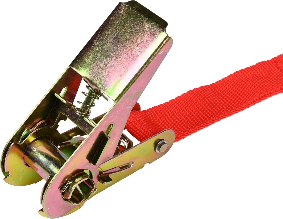 Deze spanband met een lengte van 5 meter is een betrouwbaar hulpmiddel voor het veilig vastzetten van ladingen. De band is voorzien van een ratel en haken, wat zorgt voor een stevige en veilige bevestiging. Gemaakt van PP webbing, biedt deze spanband uitstekende sterkte en duurzaamheid. Met een breekkracht van 270 kg en een lascapaciteit in rechte lijn van 135 kg, is deze spanband geschikt voor diverse toepassingen.Dankzij de robuuste constructie en eenvoudige bediening, is deze spanband ideaal voor zowel professioneel als particulier gebruik. Of je nu werkt op de bouwplaats, in de werkplaats of bij andere hijsactiviteiten, deze spanband biedt de kracht en betrouwbaarheid die je nodig hebt.