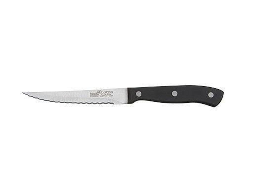 Homeij Steakmes Cooking Casa - Dit is een prima steakmes om een lekkere biefstuk mee te snijden. Het mes is voorzien van een fijn (micro) gekarteld lemmet en deze loopt geheel door in het heft en dit zorgt voor extra stabiliteit. Daarbij heeft het lemmet een lengte van 12 cm en is gemaakt van roestvrij staal. Het zwarte heft is gemaakt van het sterke POM kunststof en is met 3 klinknagels bevestigd. Vanwege de professionele techniek die gebruikt is, wordt er 5 jaar garantie gegeven.