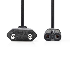Stroomkabel | Euro Male | IEC-320-C7 | 1.00 m | Recht | 2x 0.75 mm² | Koper | Plat | Nikkel | H03VVH2-F 2x0,75 mm² | PVC | Stekkertype: Type C (CEE 7/16 | Netvoeding | 250 V ~ 50/60 Hz | 2.5 A | 250 W | 63.70 g | 1 Stuks | Zwart