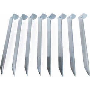Tentharing metaal halfrond 18 cm. Set met 8 verzinkte stalen tentharingen voor het verankeren van zonneschermen, tenten etc. De metalen haring is voorzien van kartels voor extra grip, en is met name geschikt voor niet te harde grond, zoals weiland, gazons, heidegrond etc. Afmeting tentharing: ca. 18x1,5 cm.