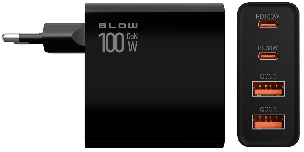 snellader, Blow, 100W, USB-C, Quick Charge, GaN-technologie, oplader, universele oplader.