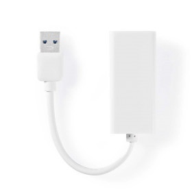 USB-Adapter | USB 3.2 Gen 1 | USB-A Male | RJ45 Female | 1 Gbps | 0.20 m | Rond | Verguld / Vernikkeld | ABS | Wit | Doos