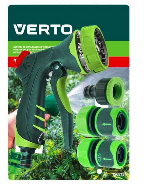 De VERTO Spuitmond en Connectoren Set 1/2" (15G713) is de ideale oplossing voor moeiteloos en efficiënt besproeien van uw tuin. Deze set bevat alles wat u nodig heeft om een veelzijdig en betrouwbaar bewateringssysteem op te zetten. Het 7-patroon sproeipistool biedt traploze regeling van de waterstroom, zodat u eenvoudig kunt schakelen tussen verschillende sproeipatronen voor optimale verzorging van al uw planten. De waterstroom is gemakkelijk aan te passen met duidelijke markeringen op het pistoollichaam, en de handige vergrendelbare trekker zorgt voor continu gebruik zonder inspanning.