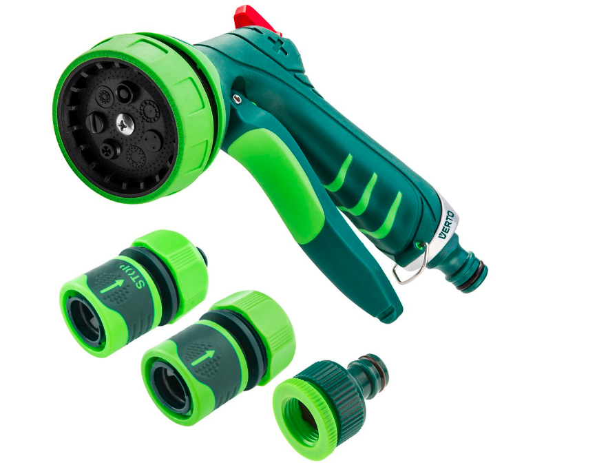 - Sproeipistool met 7 patronen en traploze regeling: Voor optimale controle over waterstroom en sproeipatronen.
