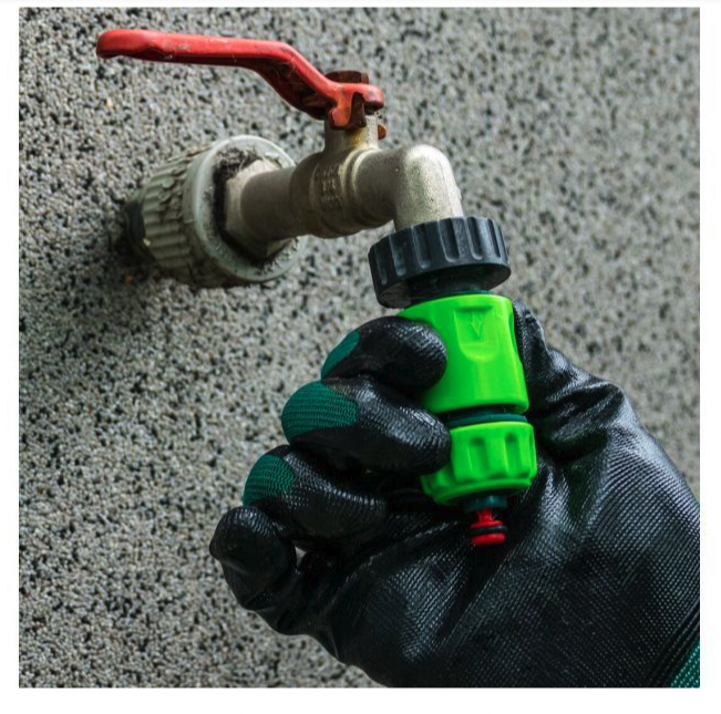 - ½” waterafsluitkoppeling: Deze klep maakt het mogelijk om de waterstroom te stoppen zonder de watertoevoer via de kraan volledig af te sluiten. Dit is handig voor het eenvoudig stoppen van de waterstroom tijdens het gebruik.
