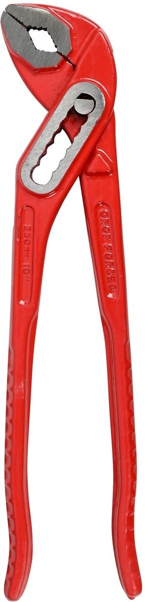 Deze waterpomptang van 10 inch (ca. 25 cm) is ideaal voor het vastgrijpen, draaien en losmaken van buizen, moeren en andere ronde voorwerpen. De verstelbare bek en het stevige, rode handvat zorgen voor optimale grip en gebruiksgemak. Geschikt voor zowel professioneel als doe-het-zelf gebruik.