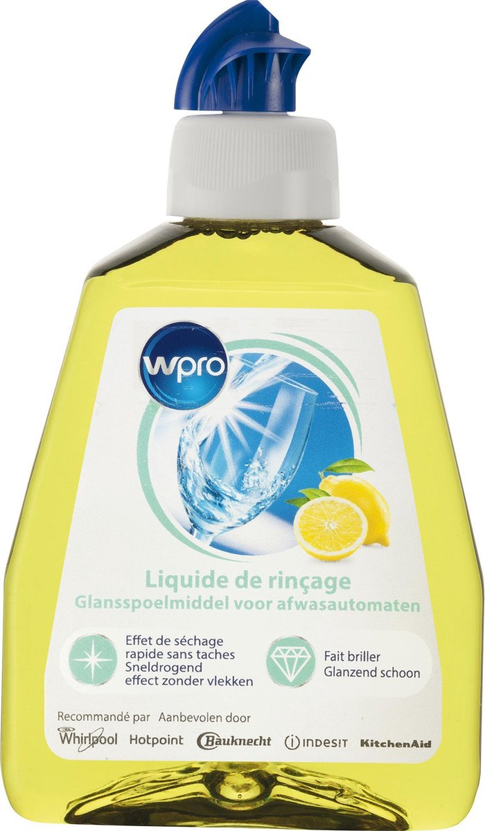 Het WPRO Glansspoelmiddel (484000008830) is speciaal ontworpen voor vaatwassers en zorgt voor een schitterende glans zonder vlekken. Geniet van een sneldrogend effect met een verfrissende citroengeur.