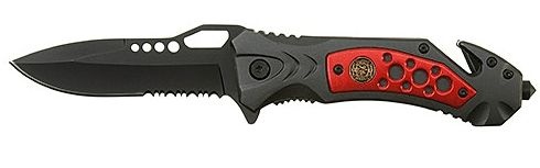 Homeij ESCAPE K1 rvs GLASBREKER. Het Homeij ESCAPE veiligheidszakmes is uitgerust met een glasbreker en cutterlemmet. Een ruit intikken of gordelriem doorsnijden is geen enkel probleem! De glasbreker is gemaakt van Tungsten staal en deze is vaker dan eens te gebruiken. U opent het mes met √Š√Šn hand met het ‚ÄòQuickSafe‚Äô-systeem. Deze blokkeert via linerlock. Met het cutterlemmet snijdt u een gordelriem, tie wraps en touw door. Het lemmet is van zwart gecoat 420 roestvrij staal en heeft een vlijmscherpe kartel. Het heft heeft schalen van geanodiseerd aluminium met een rode inzet en ribbels in de heftrug voor extra grip bij het snijden. De clip is ook van gecoat roestvrij staal en demontabel. Verpakt in doos.